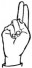 На ћирилици написано ПАУН КЉАЈИЋ састоји се из 10 слова [?]. Исписано ћириличном једноручном азбуком за глувонеме: